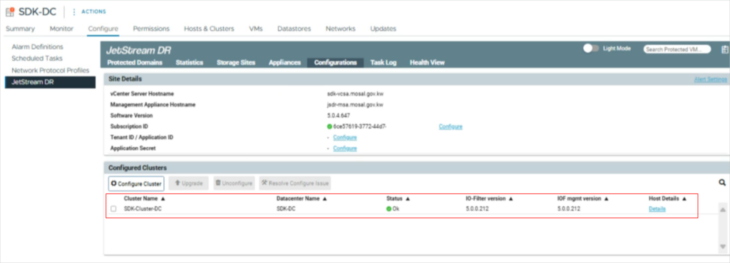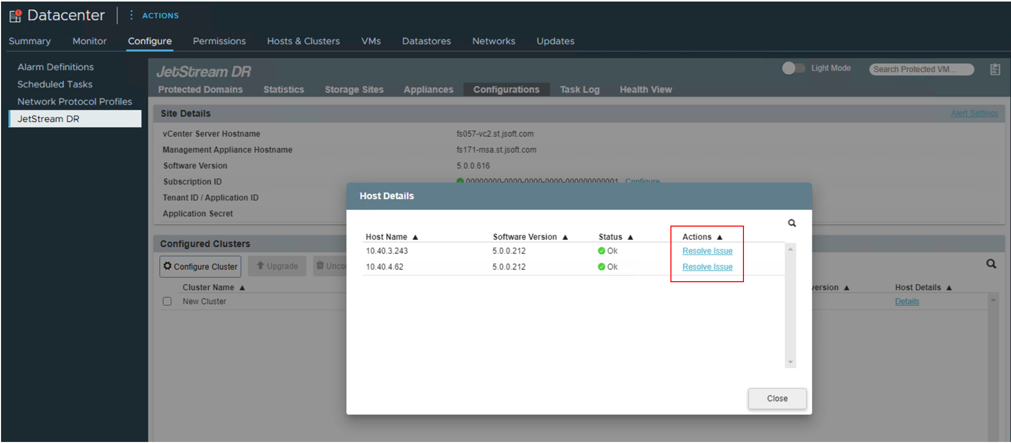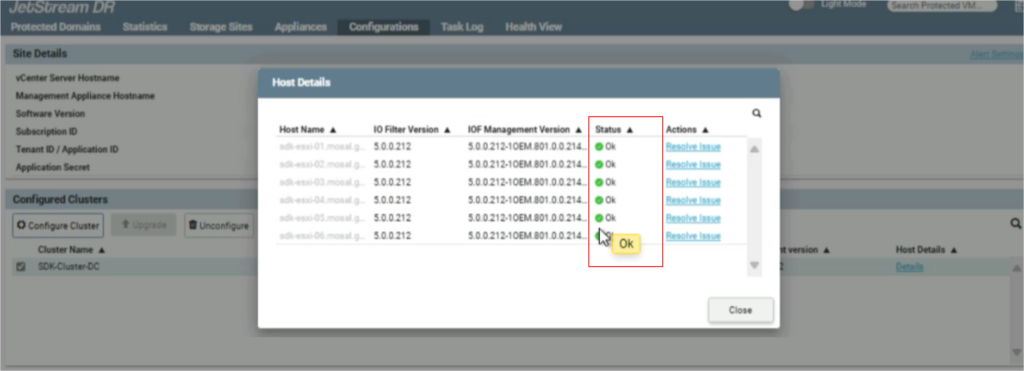 - Go to the JetStream DR UI and navigate to Configurations → Host Details.