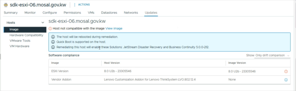 - If this is not feasible, then perform cluster remediation steps to allow JetStream DR software to be successfully configured on the vLCM managed cluster.