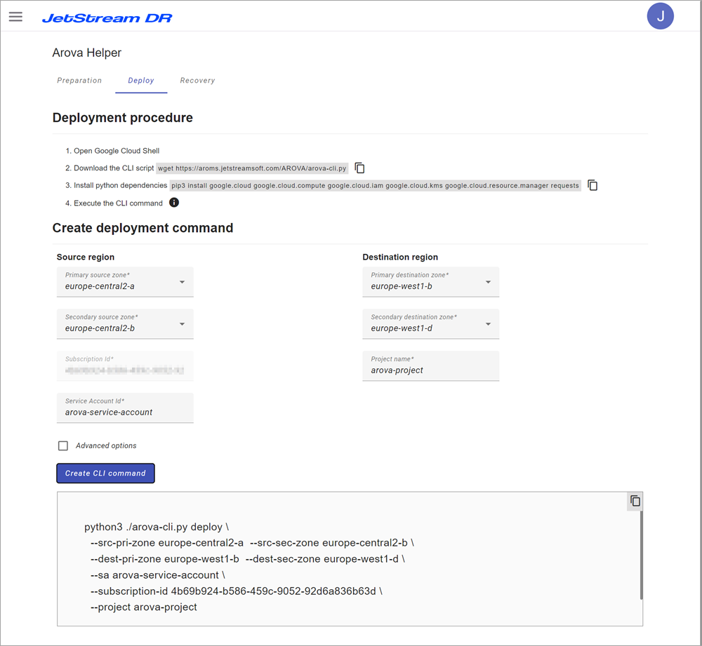 - On the Deploy Helper page, follow the prescribed steps and enter requested information to generate CLI command script.