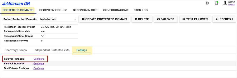 - Click the Failover Runbook Configure link.