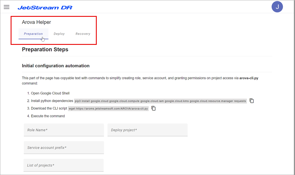 The Helper utility provides three front-end interfaces to help you write command line script with parameters necessary for preparing the infrastructure and deploying AROVA orchestration appliances.