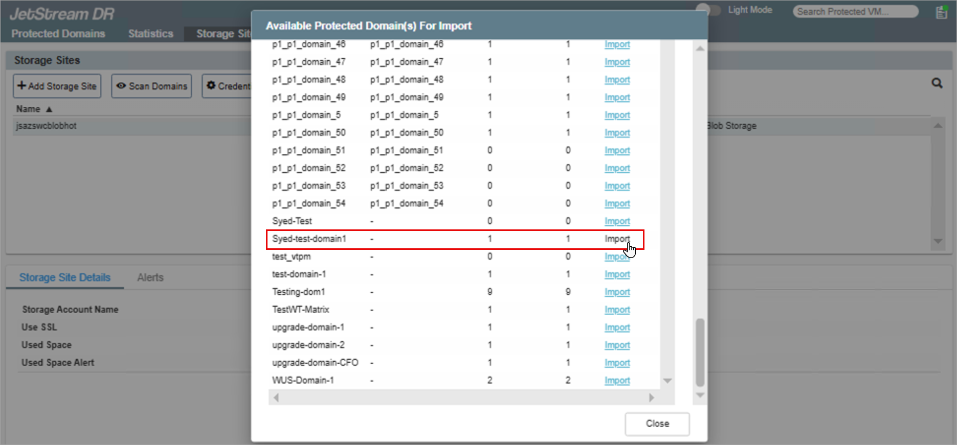 Figure 24: Click the domain's Import link.