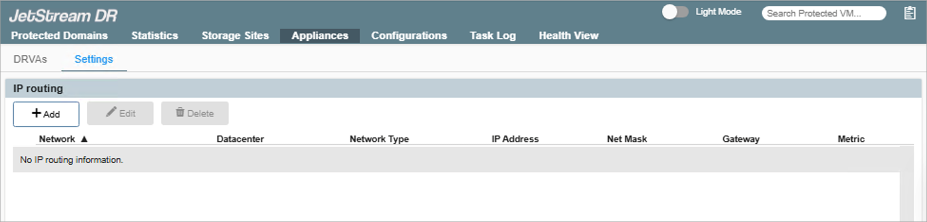 Note: Additional IP routes must be added if different networks are used for the Management network, Host I/O filter RocVA to DRVA network, and the RocVA to object store network. These are added from the Appliances screen. Learn more about IP routing.