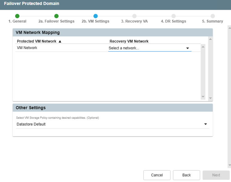 - Map protected VM networks to recovery VM networks by making selections from the menu.