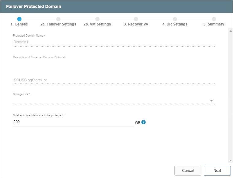 Note: Failover operations are performed at the Protected Domain level which means all VMs in the Domain will be failed over together.