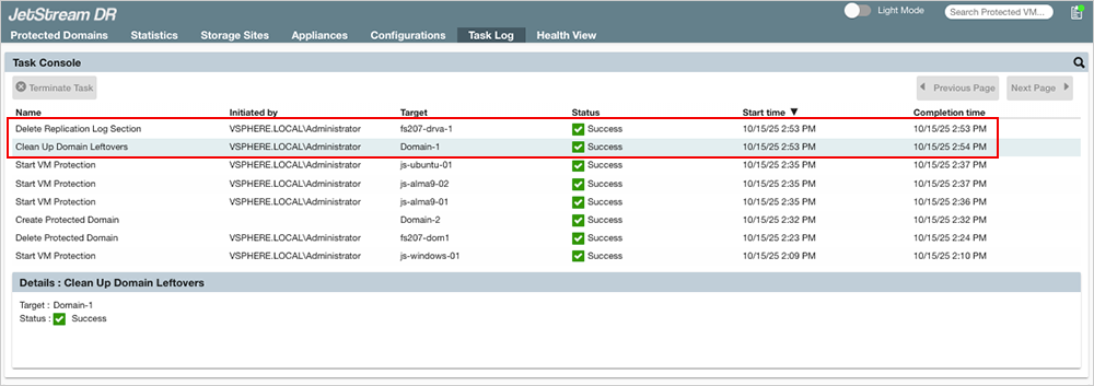 Figure 219: View the Task Log to verify cleanup of Kept VMs.