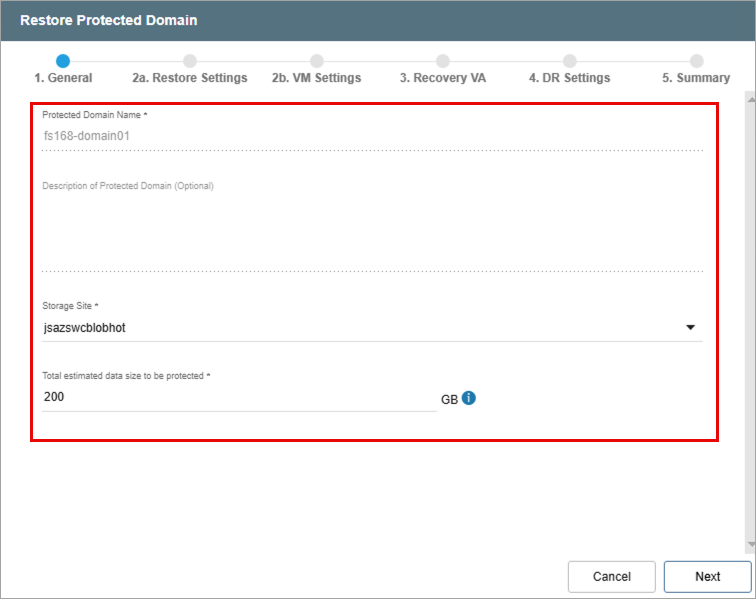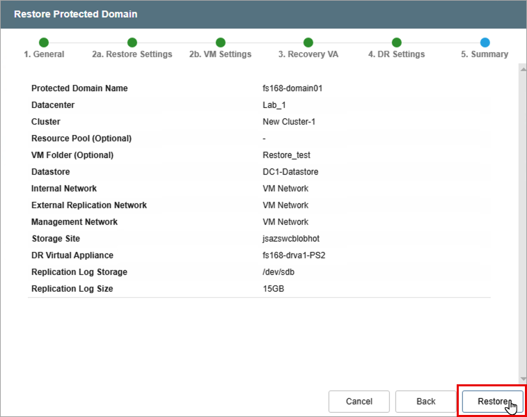 - Review information about the Domain to be restored.