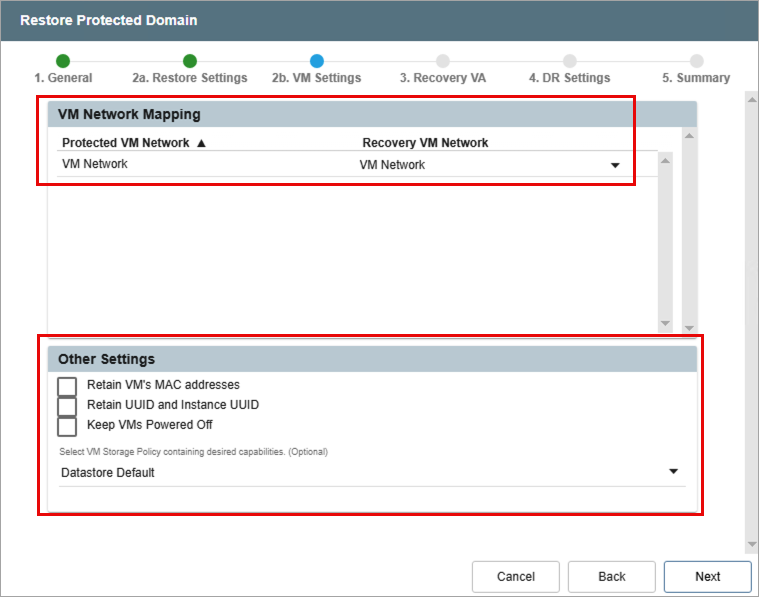 - Specify network settings for the Management Network, Host (IOFilter)/RocVA to DRVA Network, and Recovery Network to Object Store.