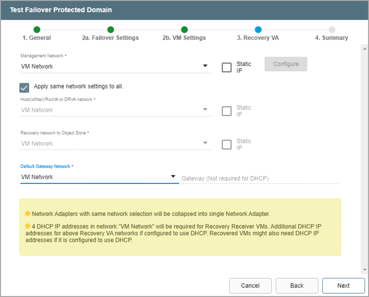 - Map a recovery VM network to the protected VM network.