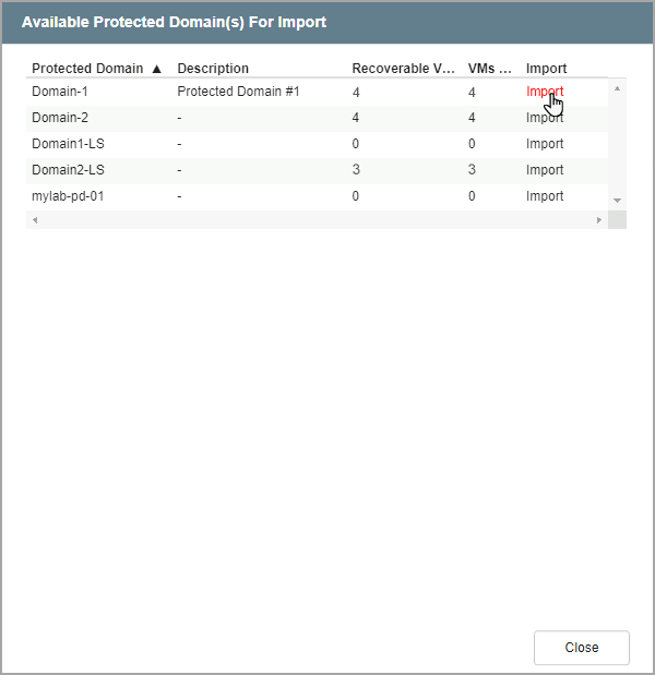 Figure 207: Import a protected domain.
