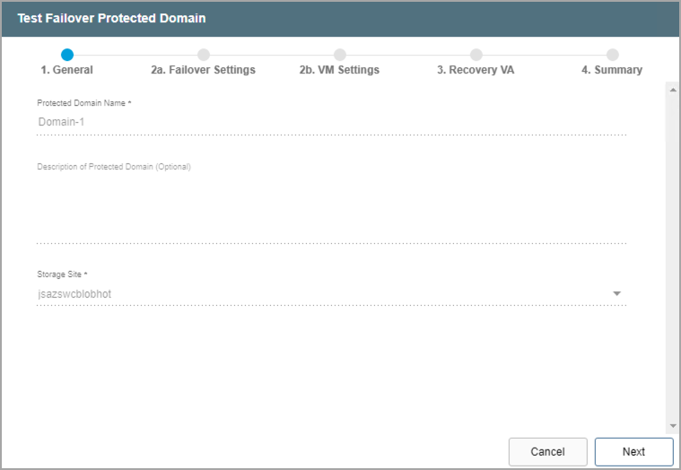 - Follow the guided steps of the dialog window to configure test failover.