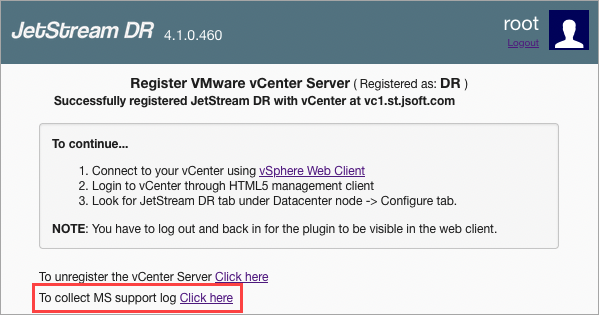 vCenter Server and MSA logs are needed to investigate all JetStream DR software related issues. This is how to collect and download support logs for troubleshooting JetStream DR software:
