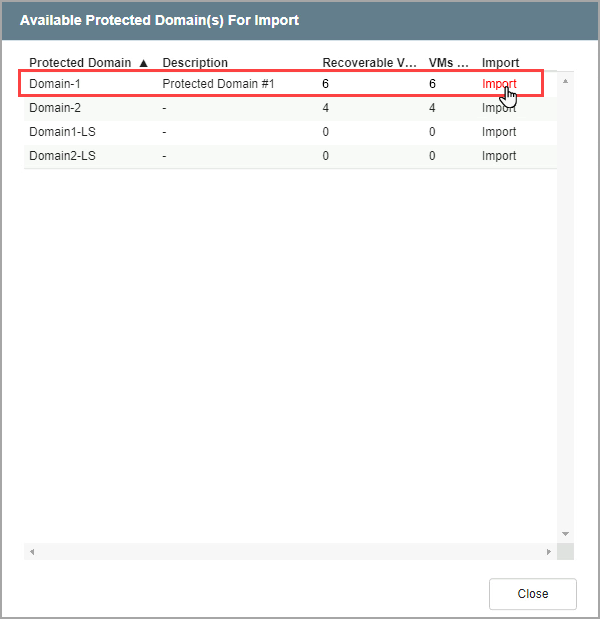 - The Domain will be imported for recovery.
