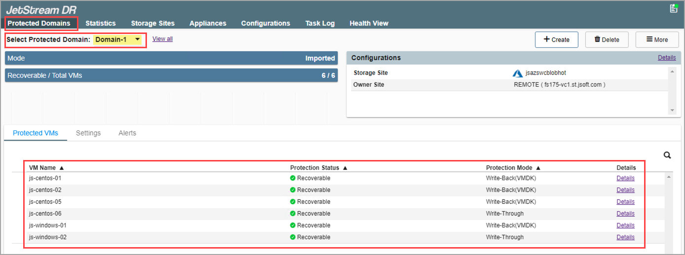 Note: If multiple Domains were imported, choose the desired Domain from the Select Protected Domain menu.