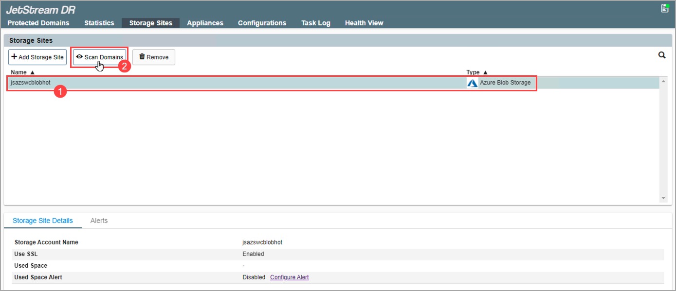 - On the Storage Sites screen, select the object store from the storage site (added previously).