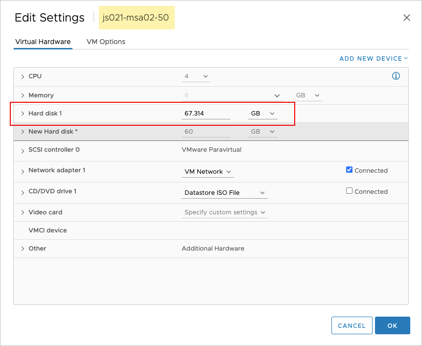 - After step 7 has been completed, detach the old MSA's disk from the new 5.0 MSA. All of its original settings should now be copied to the new MSA's disk (including ip, fqdn, etc.)