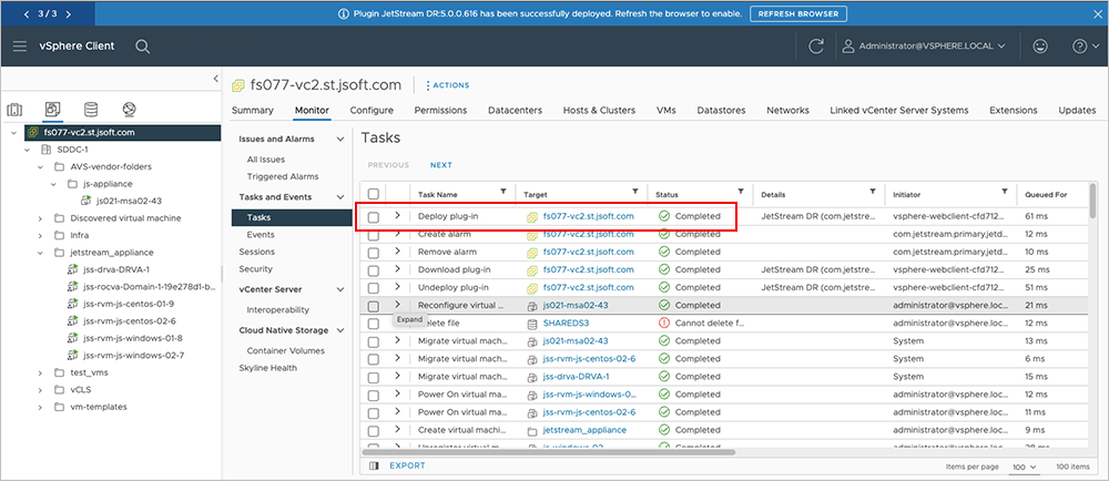 - Refresh the vSphere client browser to access the upgraded JetStream DR plug-in.