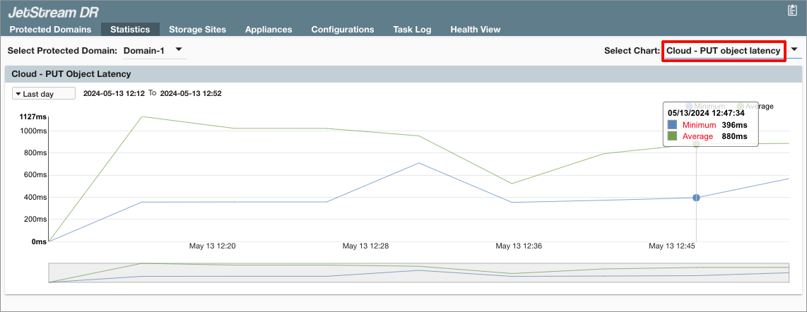 - The PUT Object Latency report provides insight allowing performance of the outgoing replication channel to be analyzed.