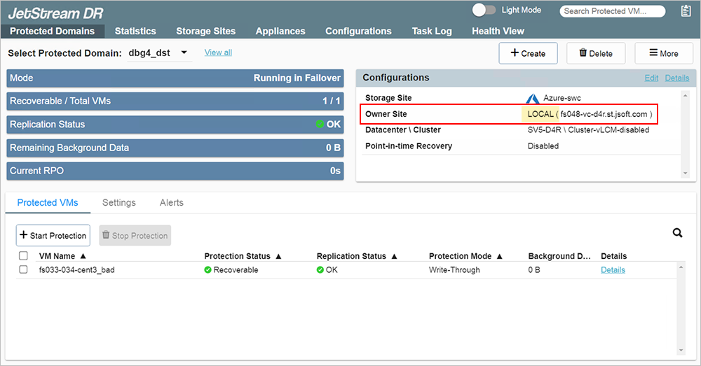 Important: Do not restore a Protected Domain to a location where the Owner Site is "LOCAL." Contact JetStream Support for assistance if you encounter this situation.