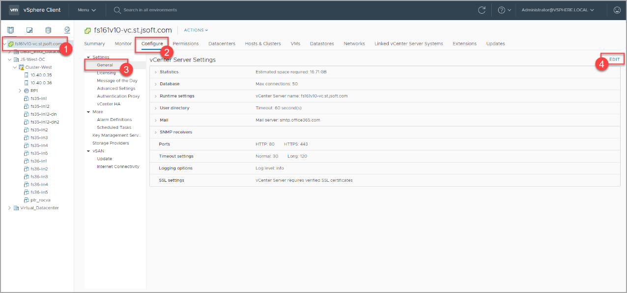 - Select the vCenter Server in the Navigator pane (#1).