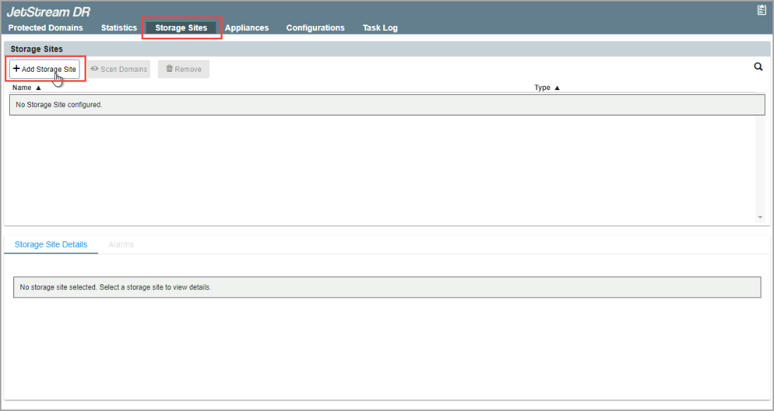 - Go to the Storage Sites screen and click the Add Storage Site button.