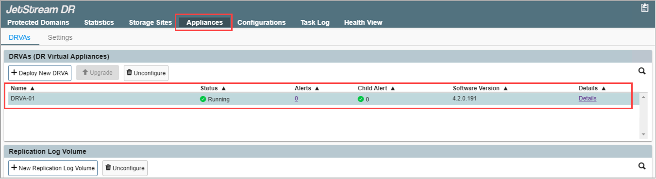 - The DRVA will be deployed and will appear in the list of DRVAs on the Appliances screen.