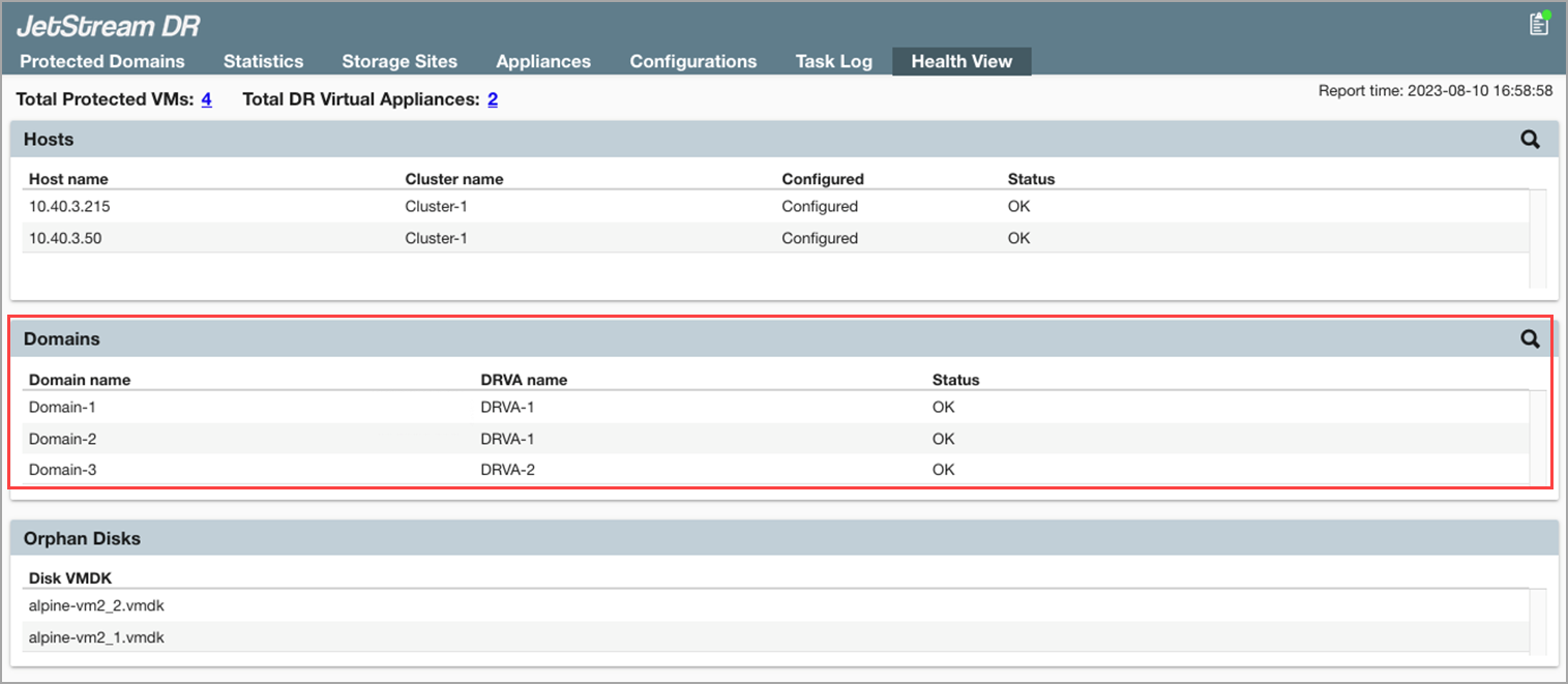 - The current Domain status.