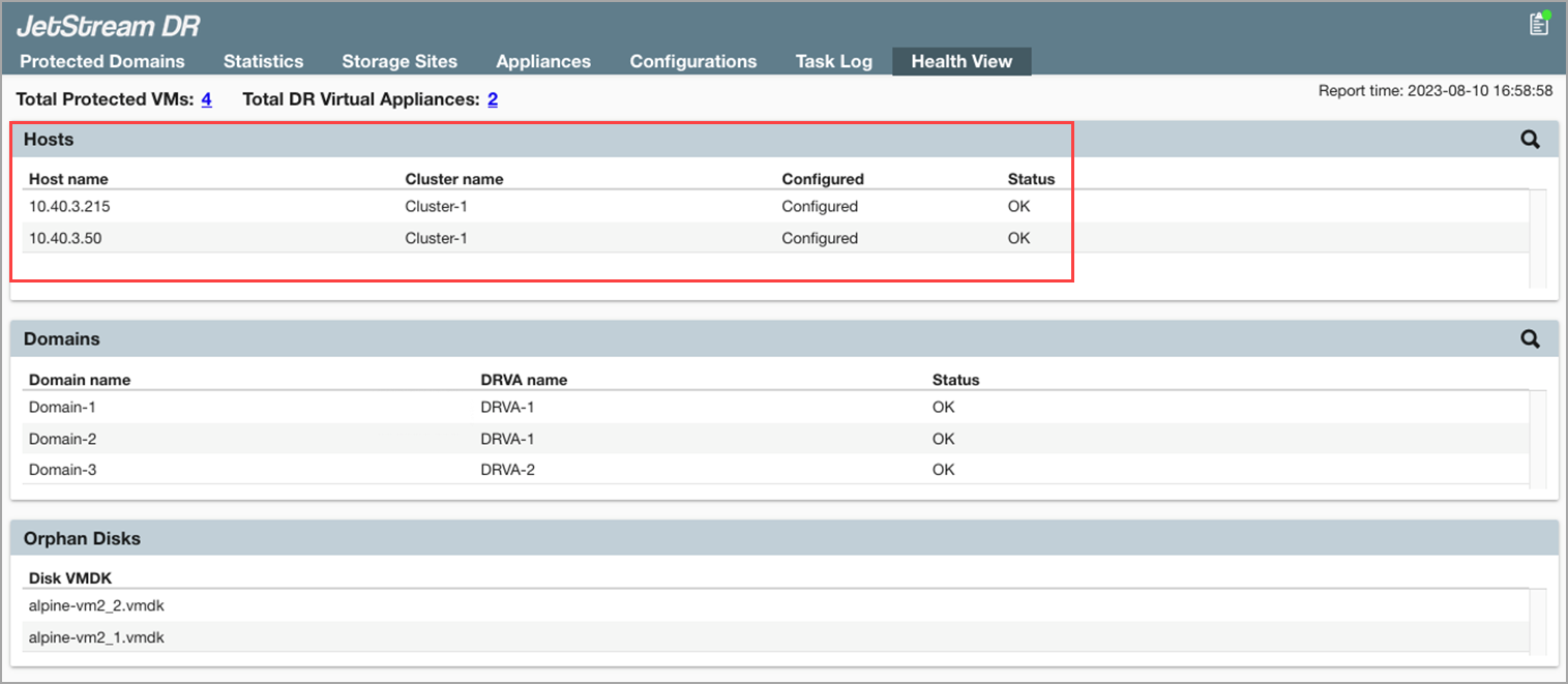 The Hosts status section summarizes: