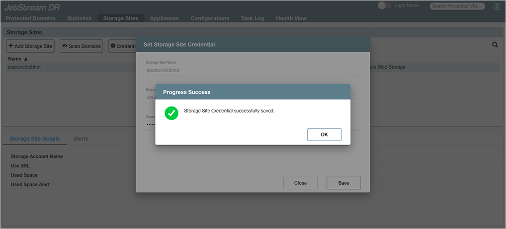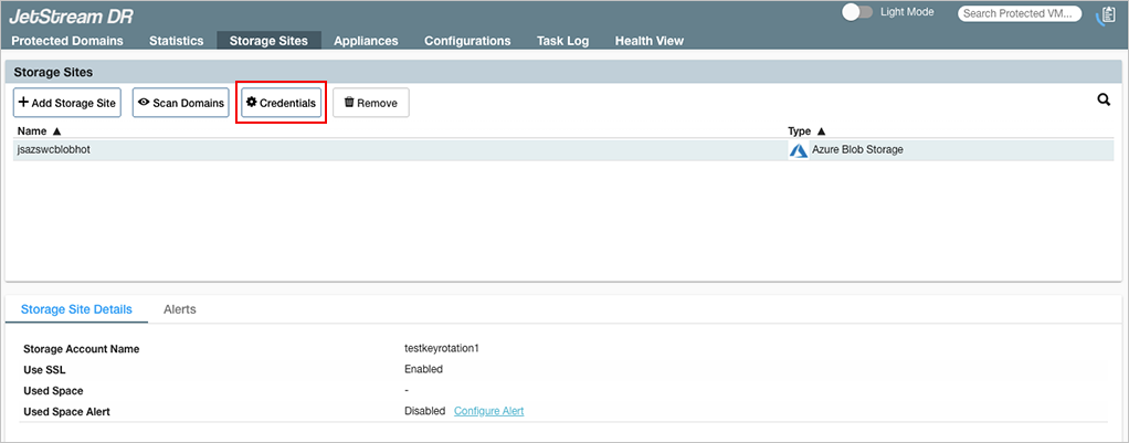 - Navigate to the Storage Sites screen and click the Credentials button.