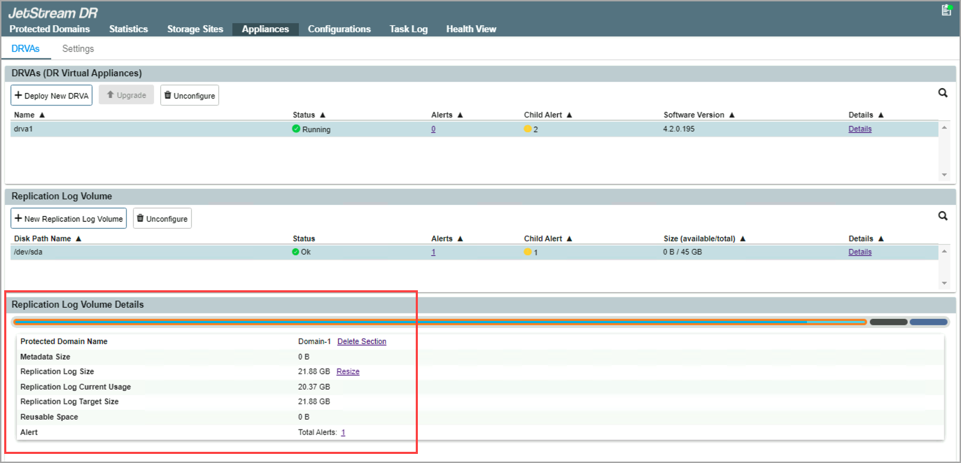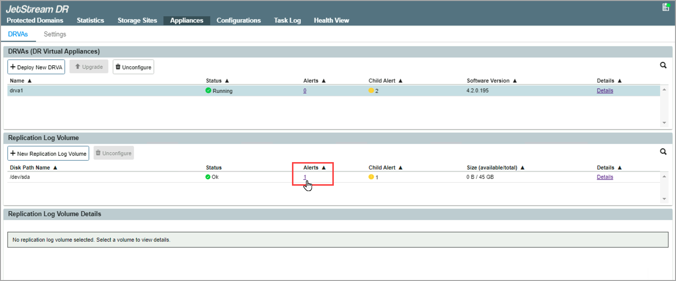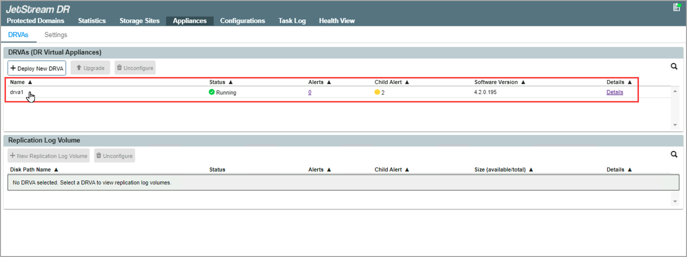 - Navigate to the Appliances screen and select the DRVA that contains Domain-1.