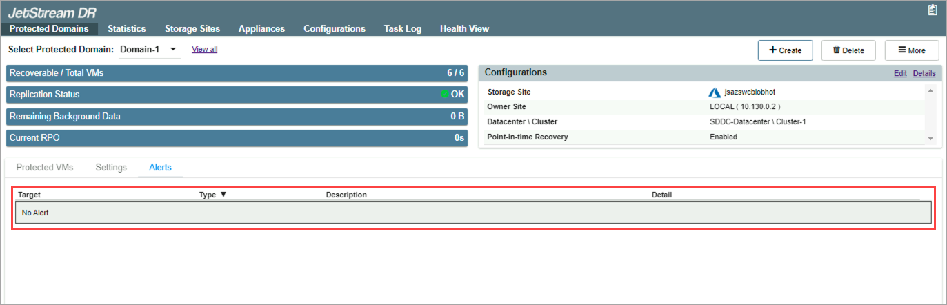 - After the issue has been resolved, the Protected Domains screen will be updated and the alert message will no longer appear.