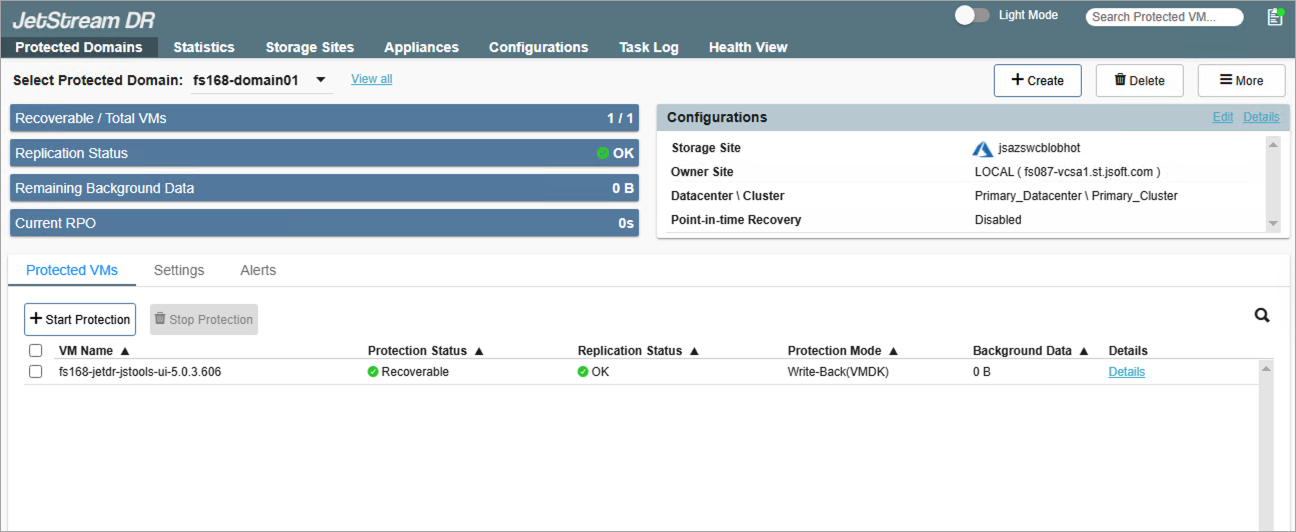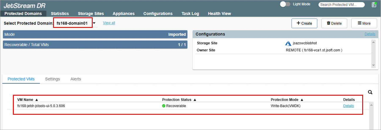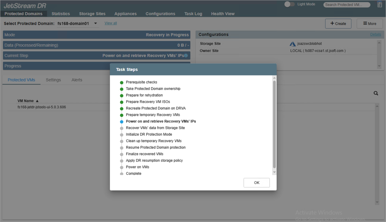 - When the task is complete the restored VMs from the Domain will be fully operational and their status will be “recoverable” and they will continue to be protected.