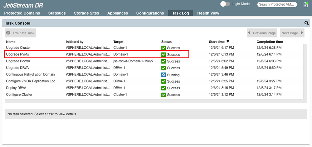 - Verify the success of the upgrade from the Task log.