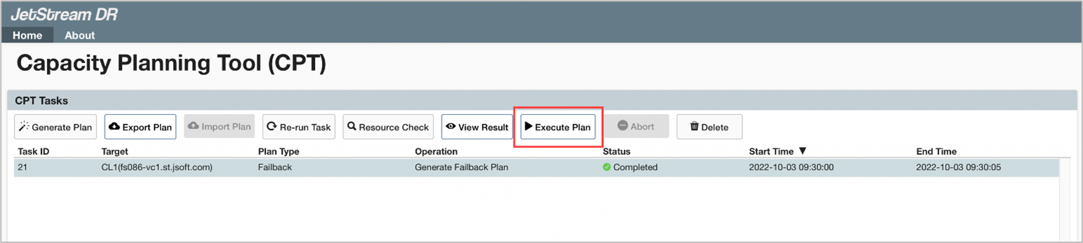 CPT Execute Failback Plan