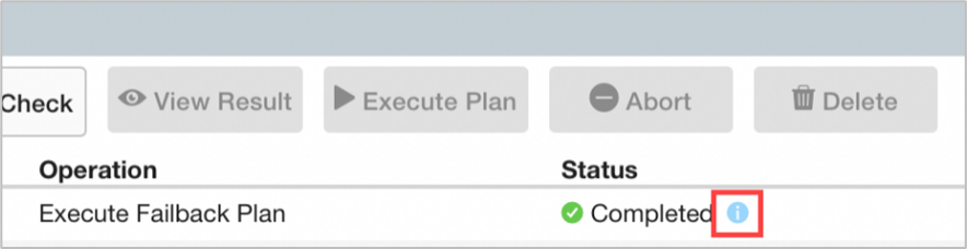 - Click the blue info icon under the Status column (for any executed task) to open a dialog window displaying task step details and status.