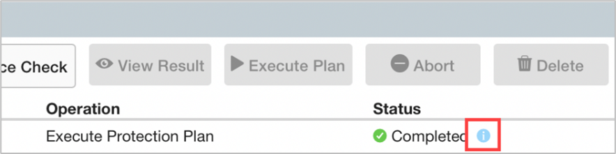 - Click the blue info icon under the Status column (for any executed task) to open a dialog window displaying task step details and status.