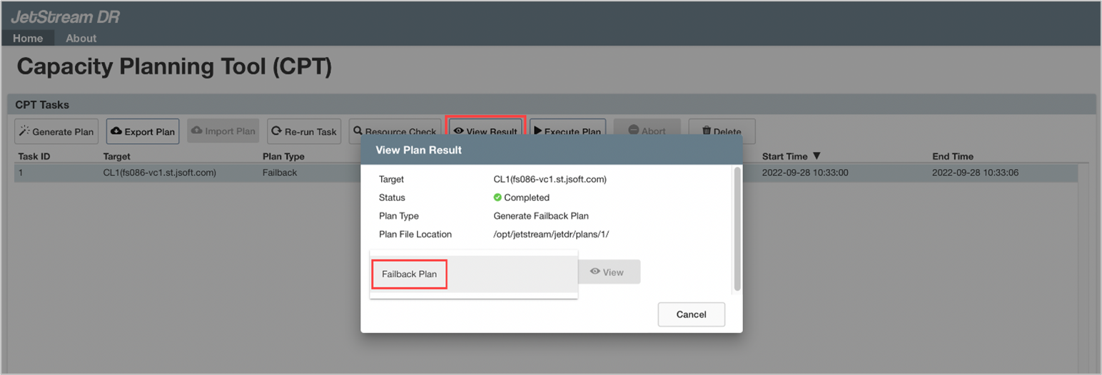 - Generates the file failback_plan_auto_gen.yml. Its contents can be viewed by clicking the View Results button.