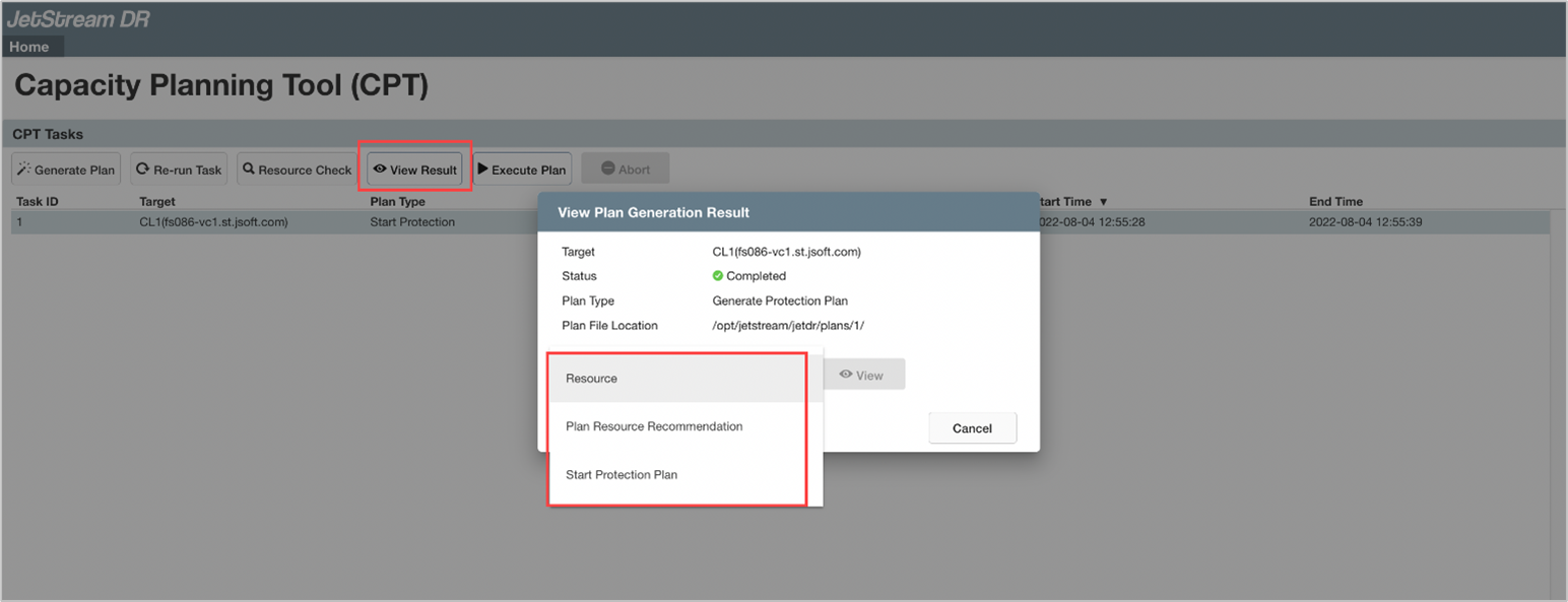 - Details of the files generated by the protection plan can be seen by clicking the View Results button.